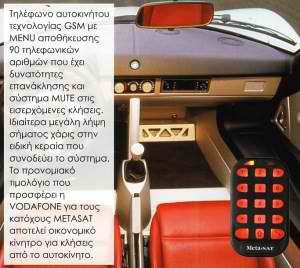 Παράλληλα λειτουργούν σαν τηλέφωνο αυτοκινήτου με CAR KIT HANDS FREE, με κάρτα σύνδεσης στο δίκτυο τηςVODAFONE με ιδιαίτερα προνομιακό τιμολόγιο και ΜΗΔΕΝΙΚΟ ΠΑΓΙΟ.
