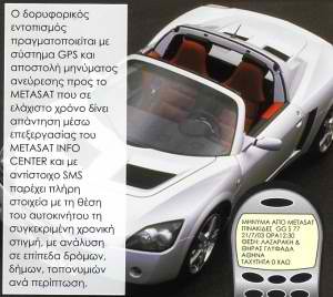 Τα δορυφορικά συστήματα METASAT της META SYSTEM συνεργάζονται με το σύστημα συναγερμού και μέσω δικτύου κινητής τηλεφωνίας πληροφορούν, εκτελούν εντολές, προειδοποιούν τον ιδιοκτήτη προσφέροντας μοναδικές υπηρεσίες, όπως τον εντοπισμό της θέσης αυτοκινήτου χάρις στο δορυφορικό σύστημαGPS (Global Positioning System).