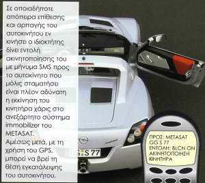 Ο κατασκευαστικός οίκος META SYSTEM αποκλειστικός προμηθευτής των μεγαλύτερων αυτοκινητοβιομηχανιών όπως FIAT AYTO, GENERAL MOTORS, DAIMLER CHRYSLER, VW GROUP και GROUP CITROEN, PEUGEOT, χάρις στην υψηλή τεχνογνωσία του και με την συμπλήρωση 30 χρόνων παρουσίας, δημιουργίας και εμπειρίας στο χώρο των συστημάτων ασφάλειας και συναγερμού αυτοκινήτων, παρουσιάζει τη νέα σειρά δορυφορικών αυτοδιαχειριζόμενων συστημάτων, καλύπτοντας τις σύγχρονες ανάγκες του οδηγού ενάντια στην αυξανόμενη εγκληματικότητα και δημιουργώντας πρόσθετη ασφάλεια με προϊόντα κορυφαίας ποιότητας και αυστηρών προδιαγραφών.